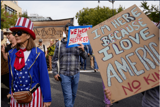 On October 18, 2025, millions of Americans participated in “No Kings” protests in a widespread demonstration against the Trump administration’s policies. Rallies took place in hundreds of cities and towns across the country, from major hubs like New York City and Washington, D.C., to smaller communities, representing one of the largest single days of protest in U.S. history.